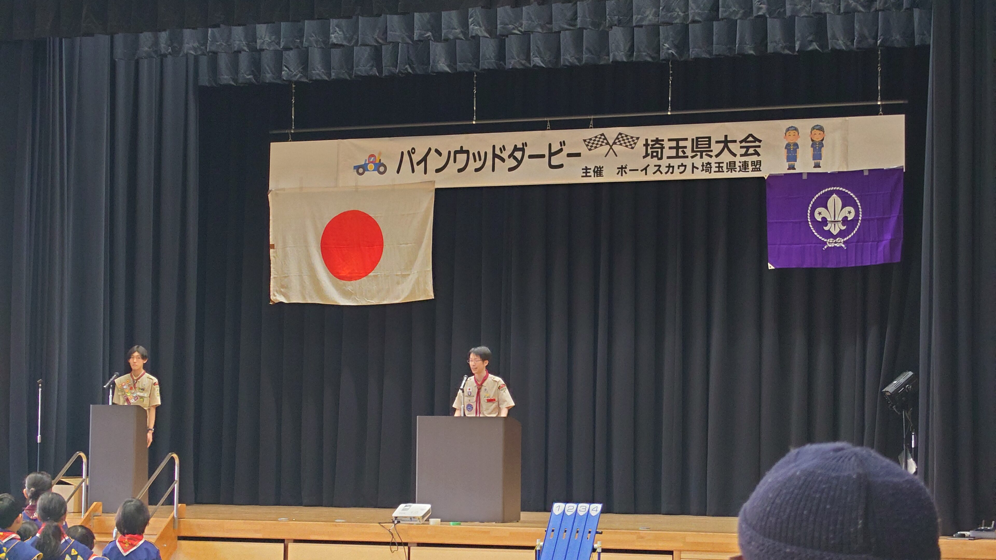 レースも終わり表彰式となりました。埼玉県連パインウッドダービでは入賞できなかった当団ですが、このALL-JAPAN Pinewood Derby では1名ほど2位入賞となりました。当団最高順位です。埼玉県大会ではゴールにたどり着くことができなかった車だったのですが、その後この大会までに見直し修正した結果この大会では2位になることができました!おめでとうございます!!